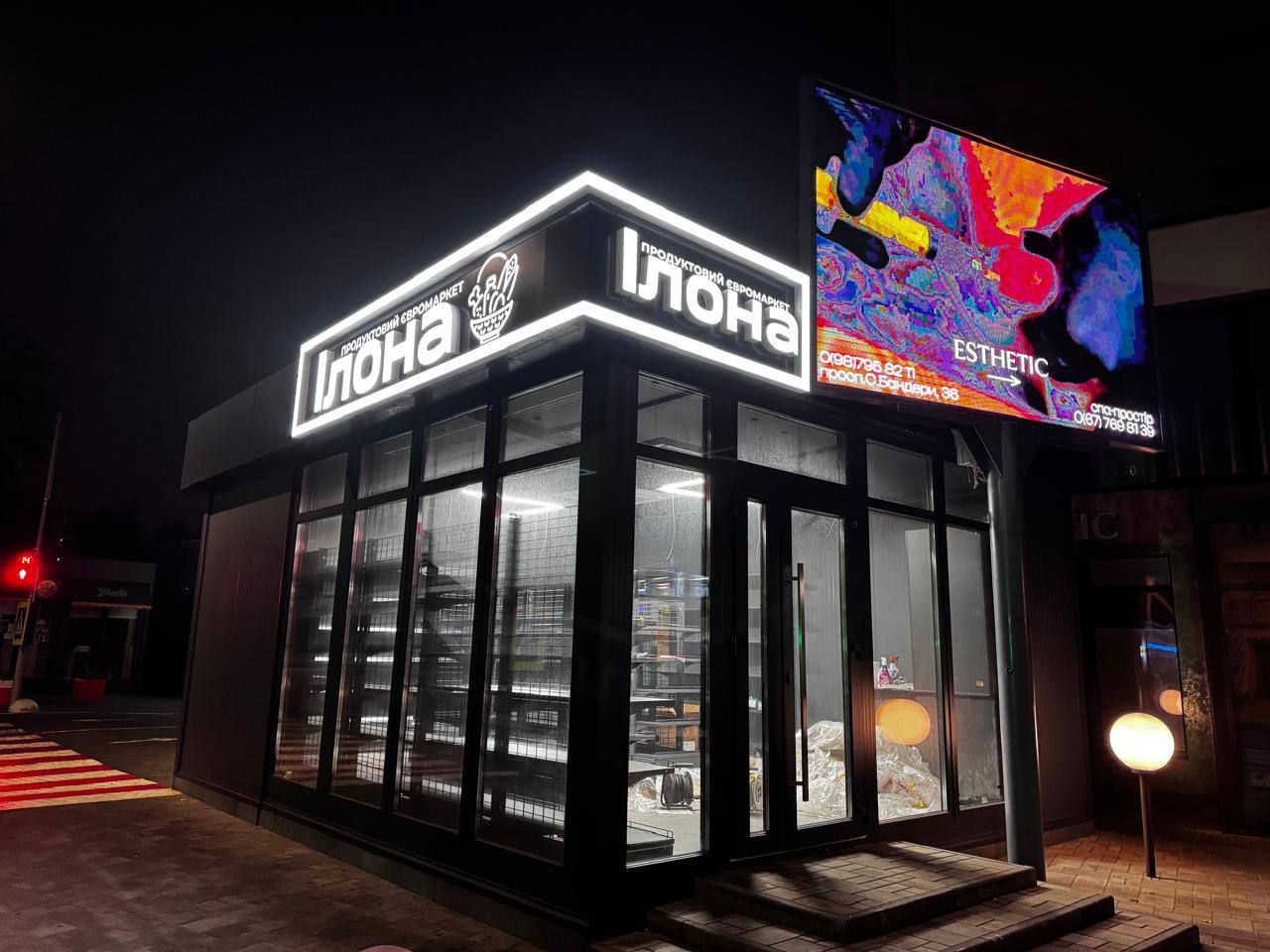 Ми виготовили світлову вивіску для магазину "Ілона". Комплексний підхід до зовнішньої реклами: від проєктування до монтажу.