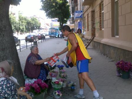 Роздача триває 14 днів і здійснюється одночасно у 5- ти місцях в час активного руху людей. Завляки нашій курєрській службі, що налічує більше 50 курєрів та проутерів можемо проводити такі масові промо-акції.
