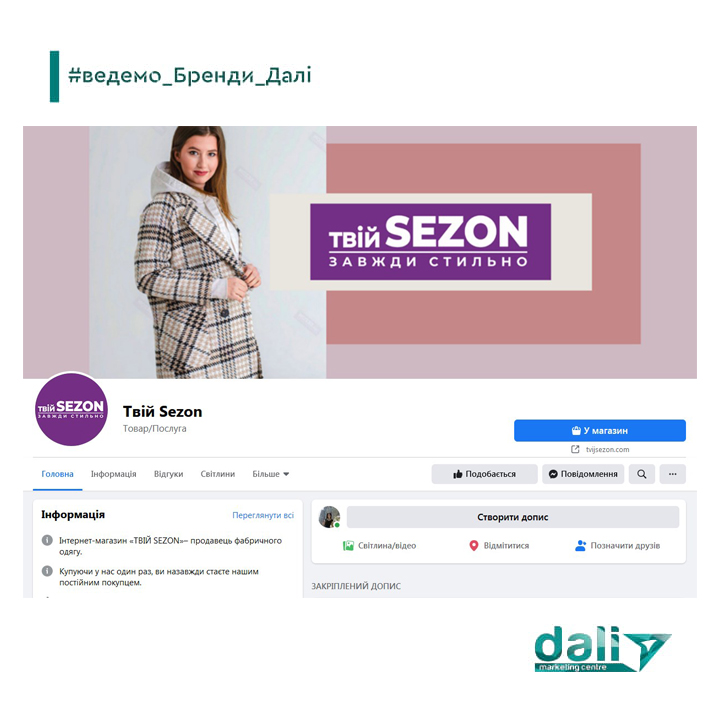 Після того як дизайнери @daliwin.digital розробили бренд-стиль для @tvij_sezon, замовник домовився з нами про співпрацю по просуванню бренду Твій Sezon на 5 років. І спіпрацю ми розпочали із створення інтернет-магазину https://tvijsezon.com/та оформлення і налаштування соцмереж. Можемо і для вашого бренду провести діагностику безкоштовно.
